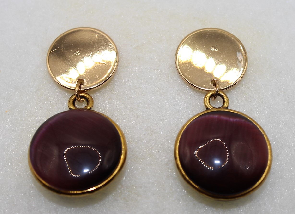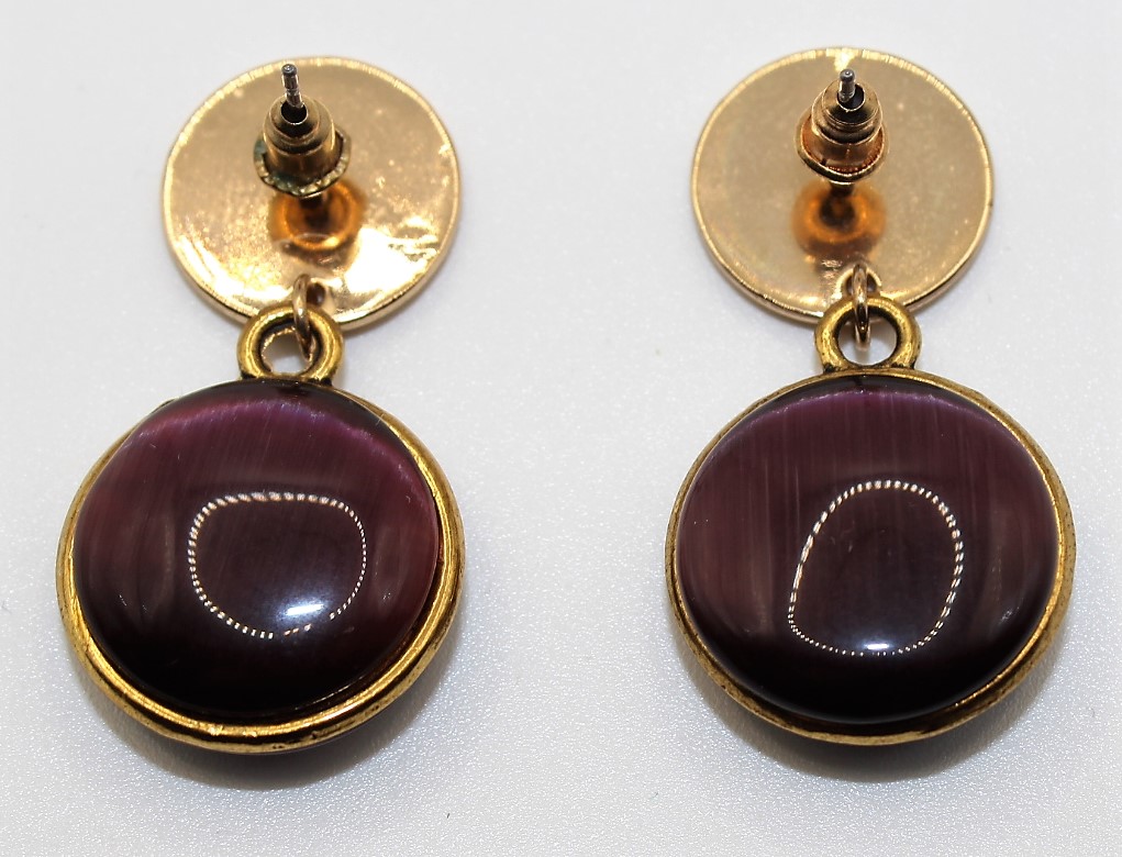 Mooie gouden oorsteker met een paarse steen die aan beide zijde van de oorhanger is bevestigd.