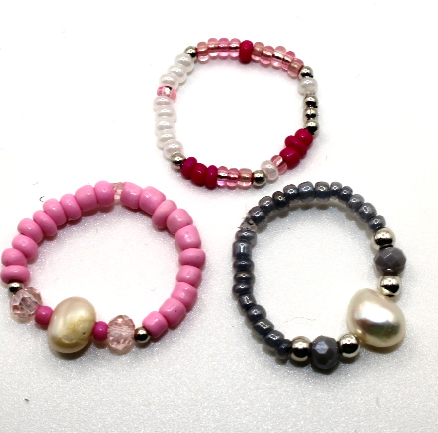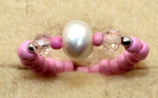 Ring geregen met rocailles en met een zoetwaterpareltje.